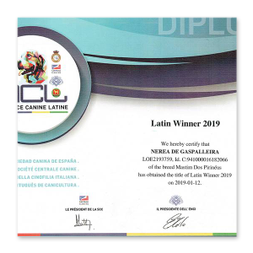 | 89.ª EXPOSICION INTERNACIONAL CANINA DO NORTE | 13-01-2019 | Campeones | AMELIA TABORDA | EXCELENTE 1º - CCC - CACIB - BOB - PW19 |