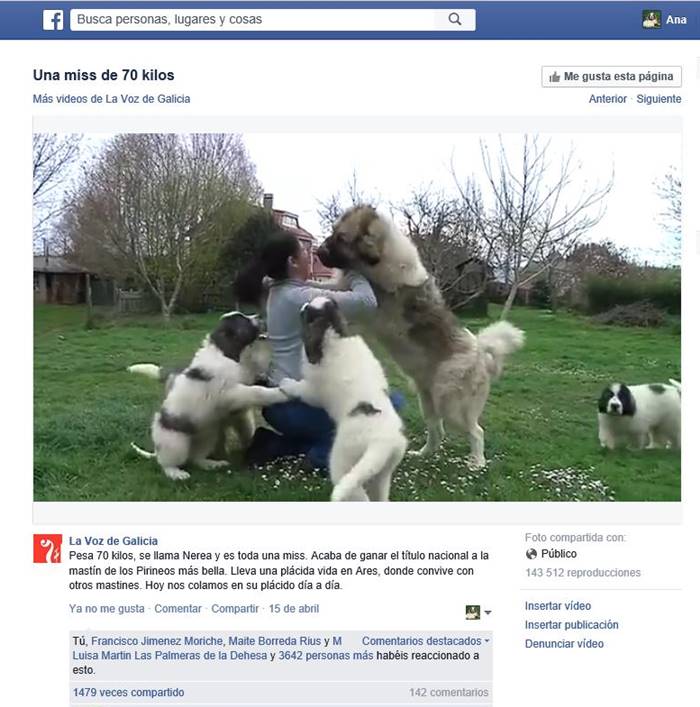 Nerea en el Facebook de La Voz de Galicia. Esta noticia fue compartida casi 1500 veces y 3642 personas le dieron "me gusta". Si quieres ver el vídeo en Facebook haz clic AQUI