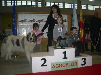 La sexta cachorra, Amanda, se ha quedado con nosotros, y ya ha despuntado en los rings obteniendo la calificación de Muy Buena 1ª en clase cachorros hembras, a los cuatro meses y medio de edad, en el Concurso Monográfico del Mastín del Pirineo de Sariñena (Huesca). Esperamos que a lo largo de 2010, Amanda y sus hermanos Alejandro y Asubio participen en exposiciones caninas y hagan llegar el nombre de “Gaspalleira” a muchos rings en España.